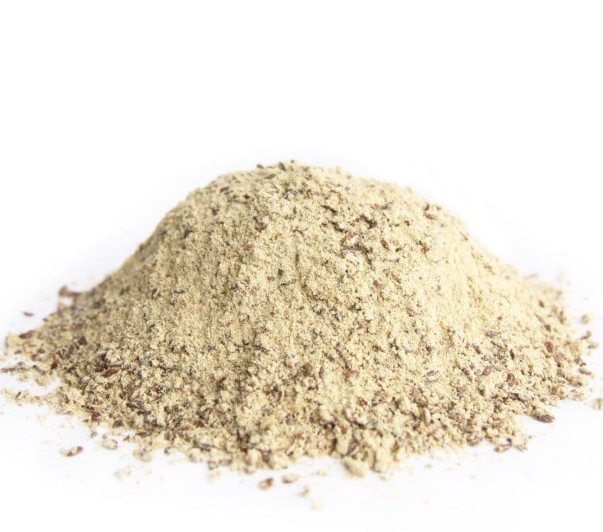 Stabilised and ground whole linseed, naturally stabilised rice bran, natural fractionated yeast extract, proprietary blend of herbs (fruits, herbs and botanicals), limestone flour, magnesium carbonate, Bioplex minerals, Lysine, Yea-Sacc, Bio-Mos, Natural vitamin E, chelated magnesium, chelated calcium, chelated zinc, chelated copper, chelated selenium, organic extra virgin sesame seed oil, natural vitamin A and D3.